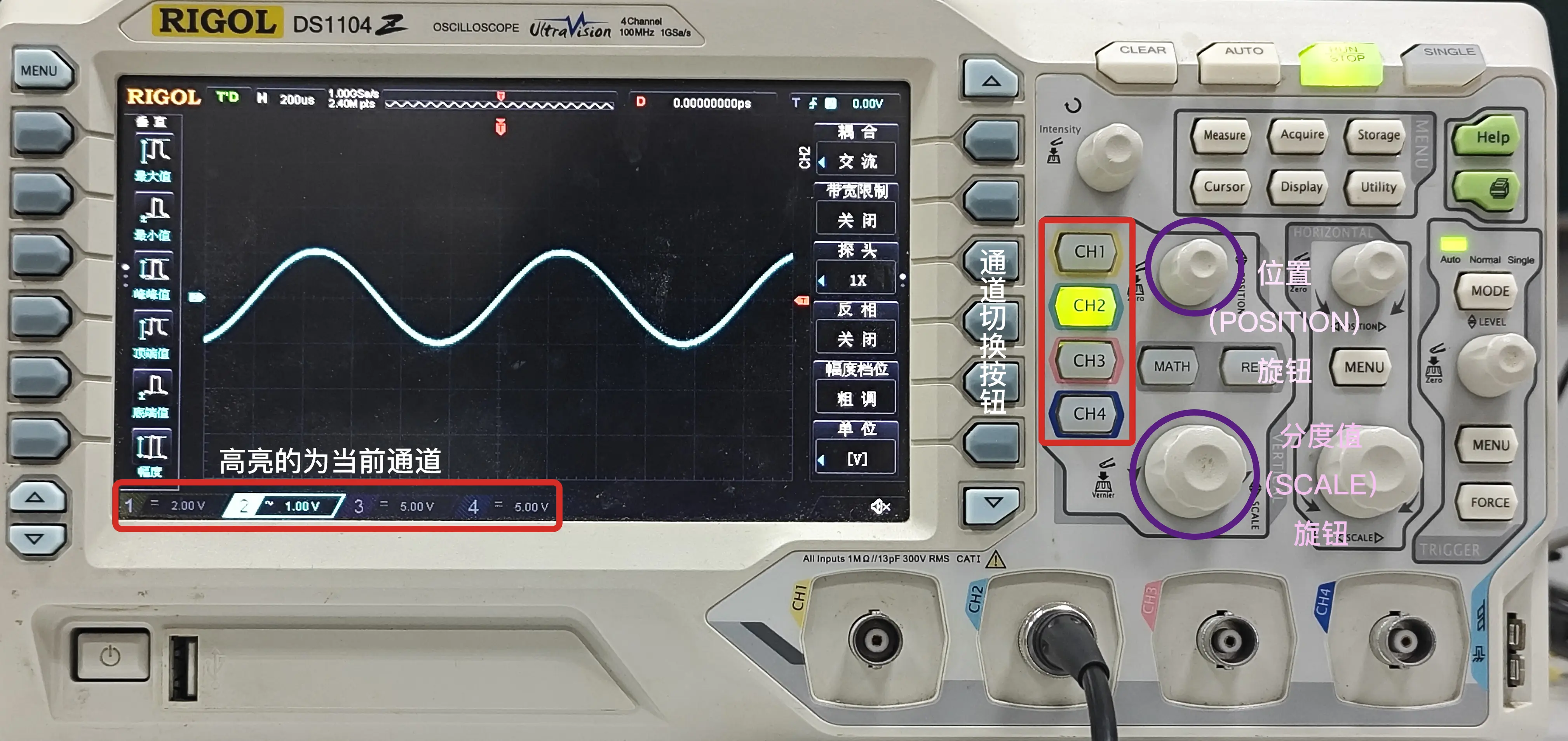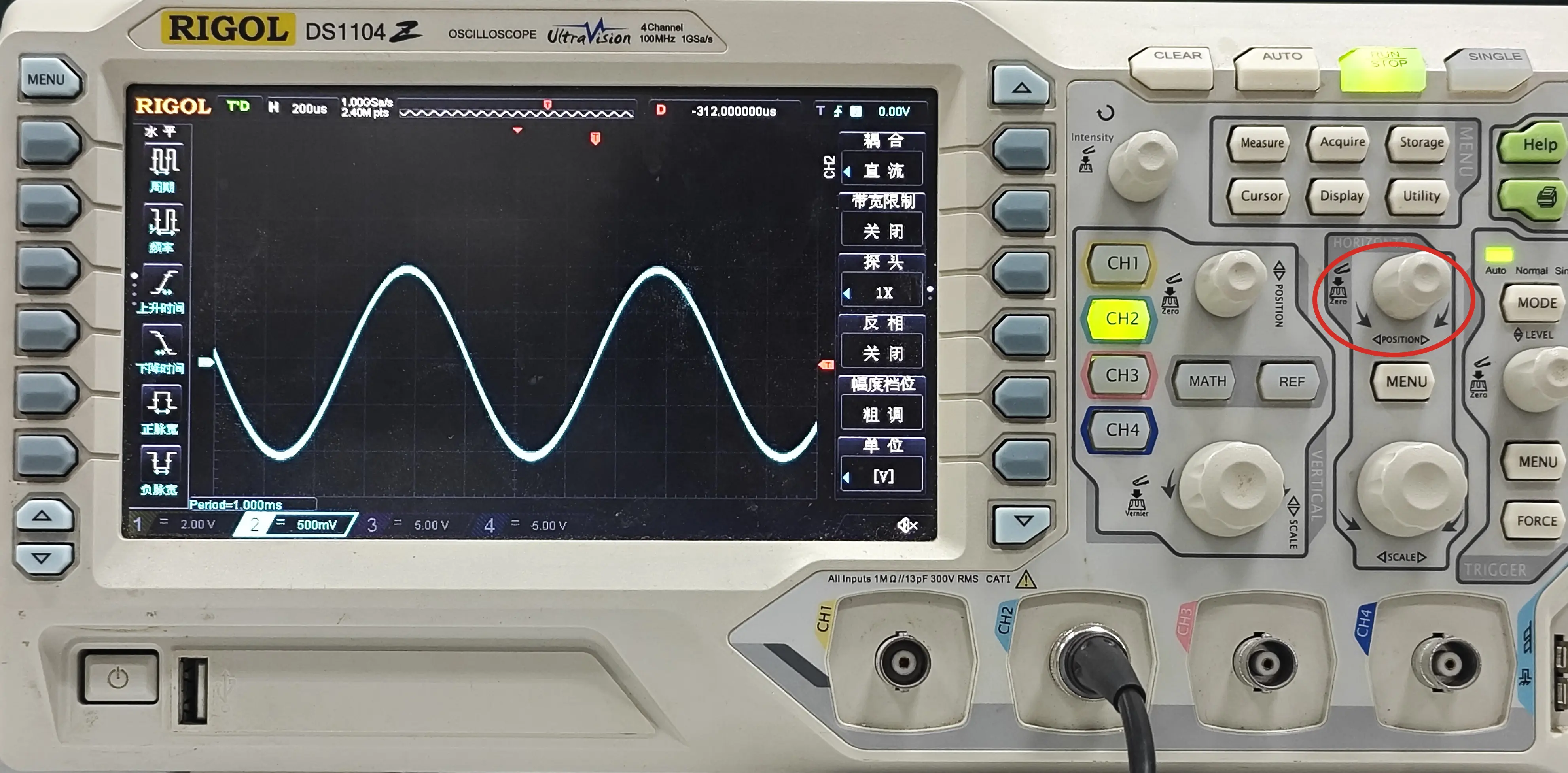 以 RIGOL DS1104 示波器为例: