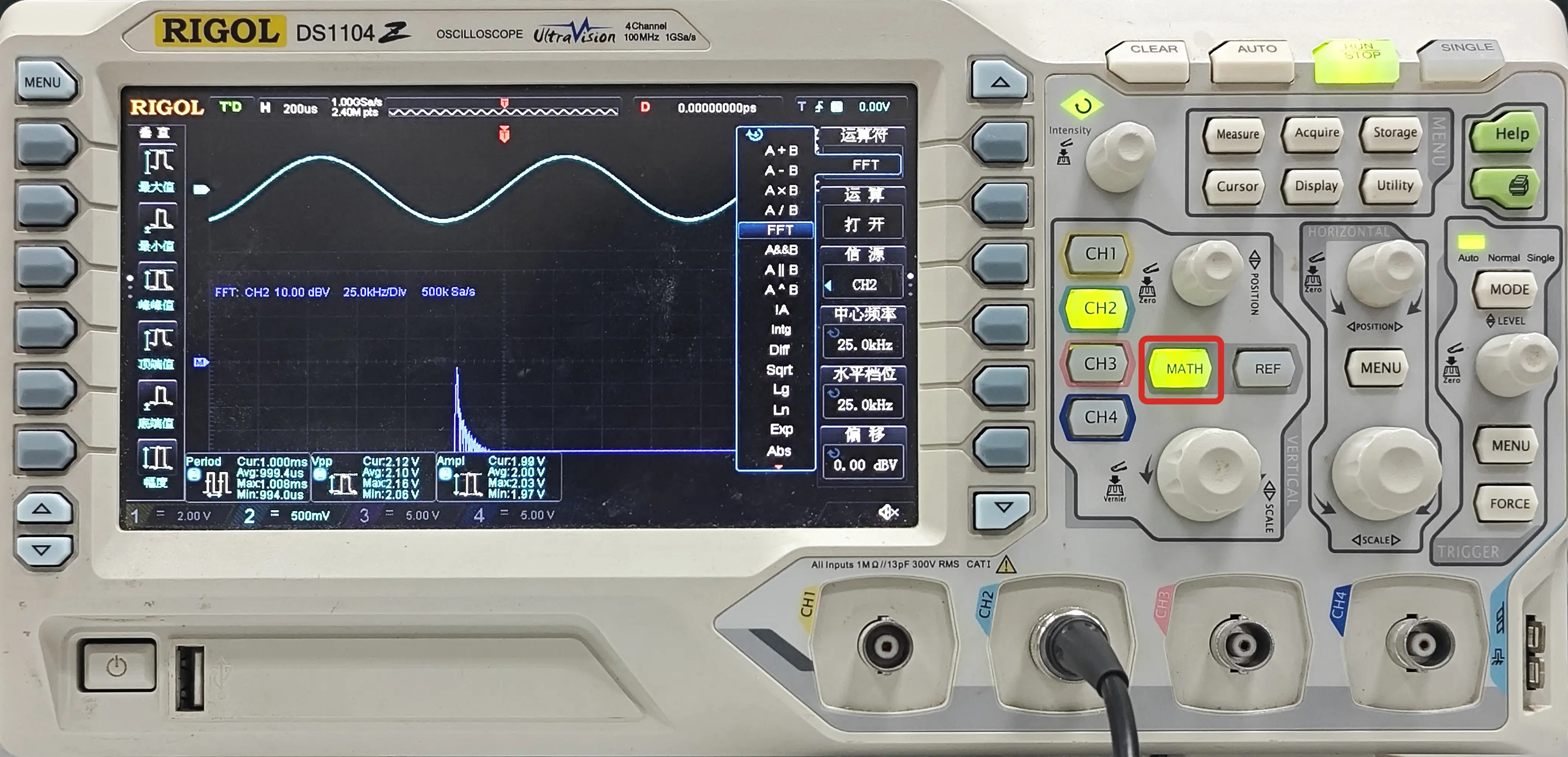 示波器具有数学运算功能,可以对信号进行加、减、乘、除、FFT、积分、微分等运算,并将运算结果显示在屏幕上。