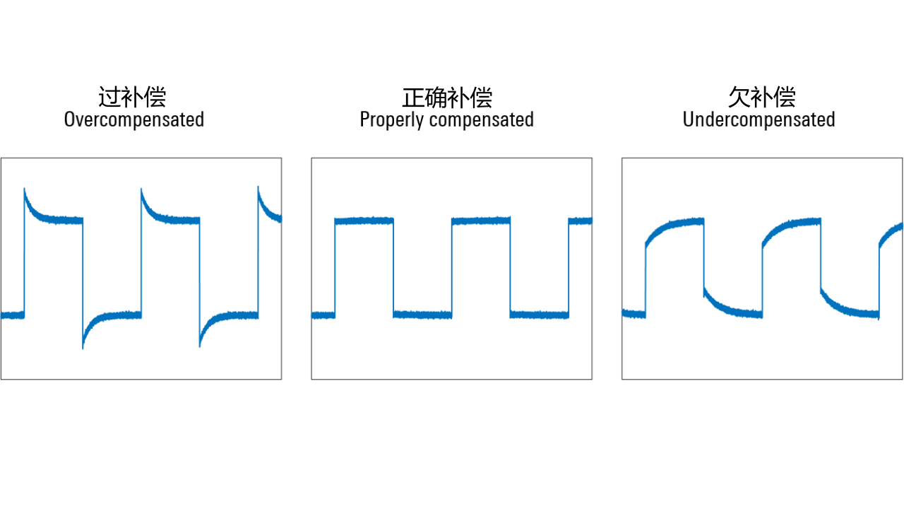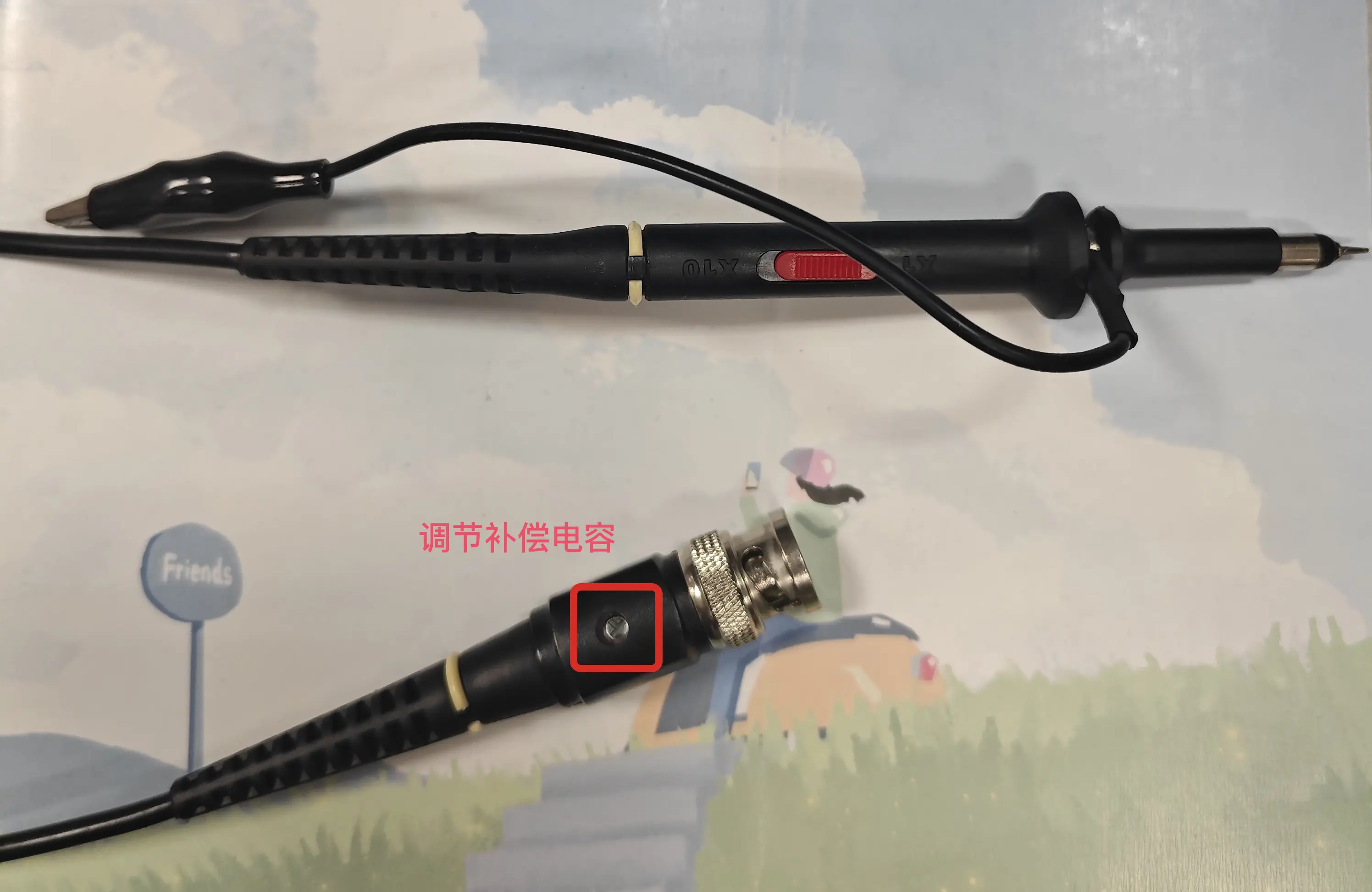在探头上找到调节补偿电容的螺丝,使用无感螺丝刀(绝缘、非金属)进行调节,直到方波的上升沿和下降沿都变得尖锐。