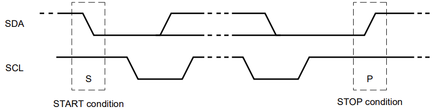 I2C 通信的开始和结束,都由主机发出 START 和 STOP 信号。