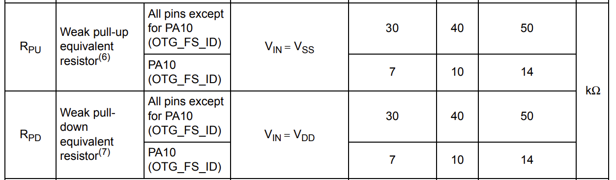 图中 PU 为上拉,PD 为下拉,右侧三个数值分别为『最小值』、『典型值』、『最大值』。