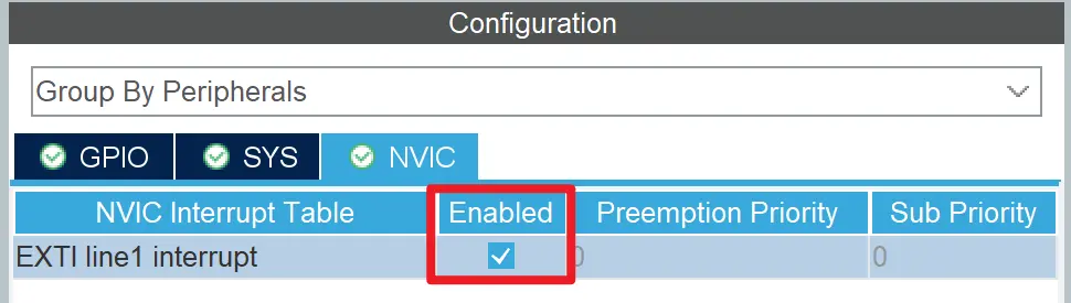 - 在 NVIC (嵌套中断向量控制器) 中,使能中断